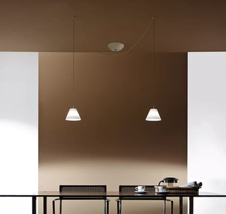 Rose which holds the transformer and to which it is possible to suspend 1, 2 or 3 lighting bodies by means of their own power cable. If the lighting point is not centred according to the place you need to light, it is possible to use a ceiling fixed nipple to hang the lighting body exactly where it is needed. Choose the lighting bodies from our 12V collection.