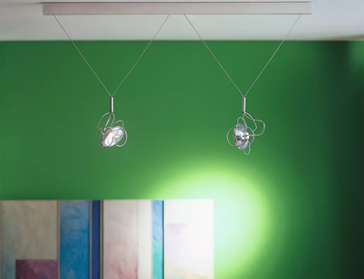 Provides direct light with a restricted light beam angle dichroic bulb. It works with LED light bulbs. It may be oriented in all directions. It is used when a strong light beam needs to be directed on paintings, sculptures, objects in domestic or commercial environments. It is made of oven polymerized powder painted steel with friction elements to keep the wanted direction.